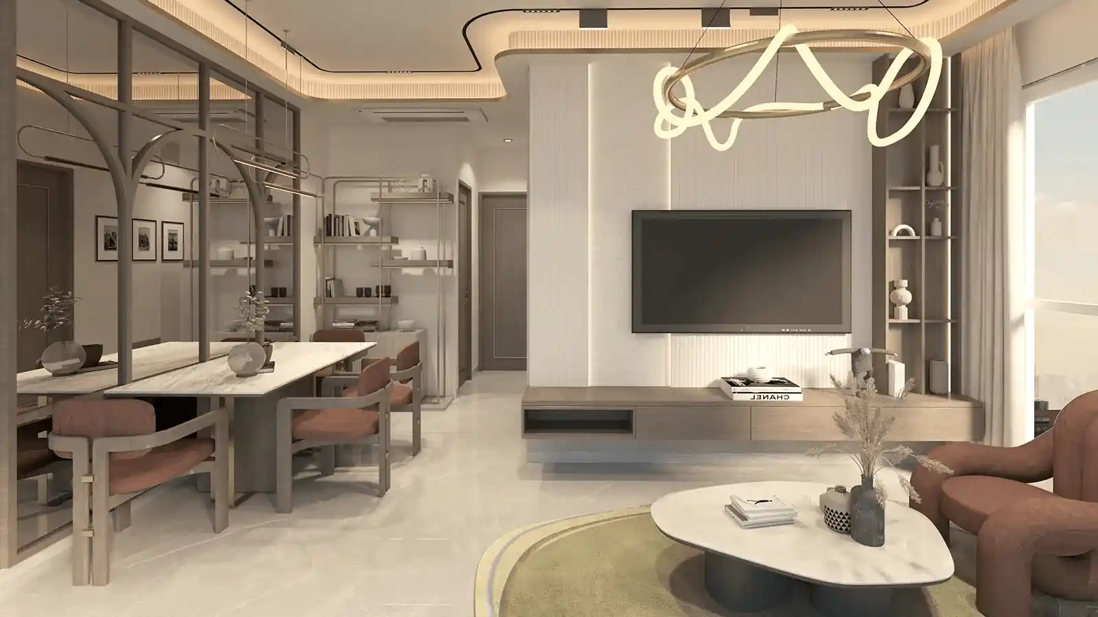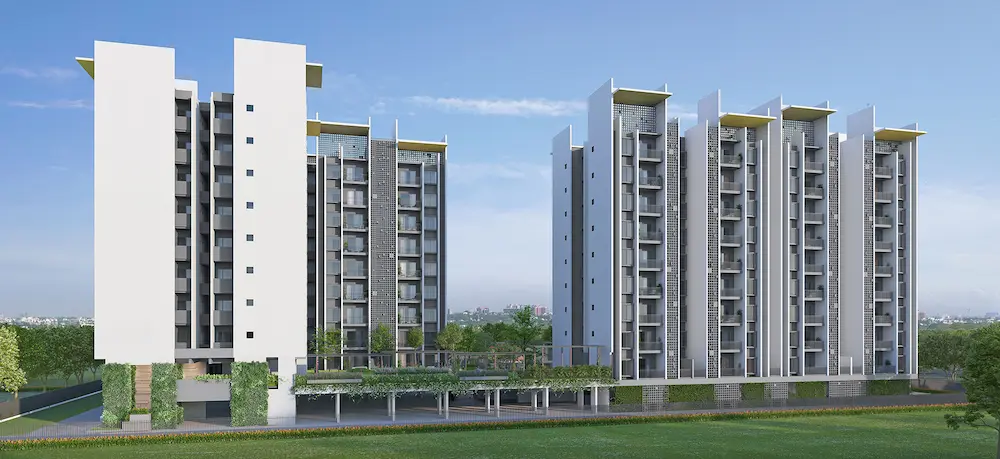 The project offers 1, 2, and 3 BHK apartments with spacious layouts and contemporary designs for comfortable living.